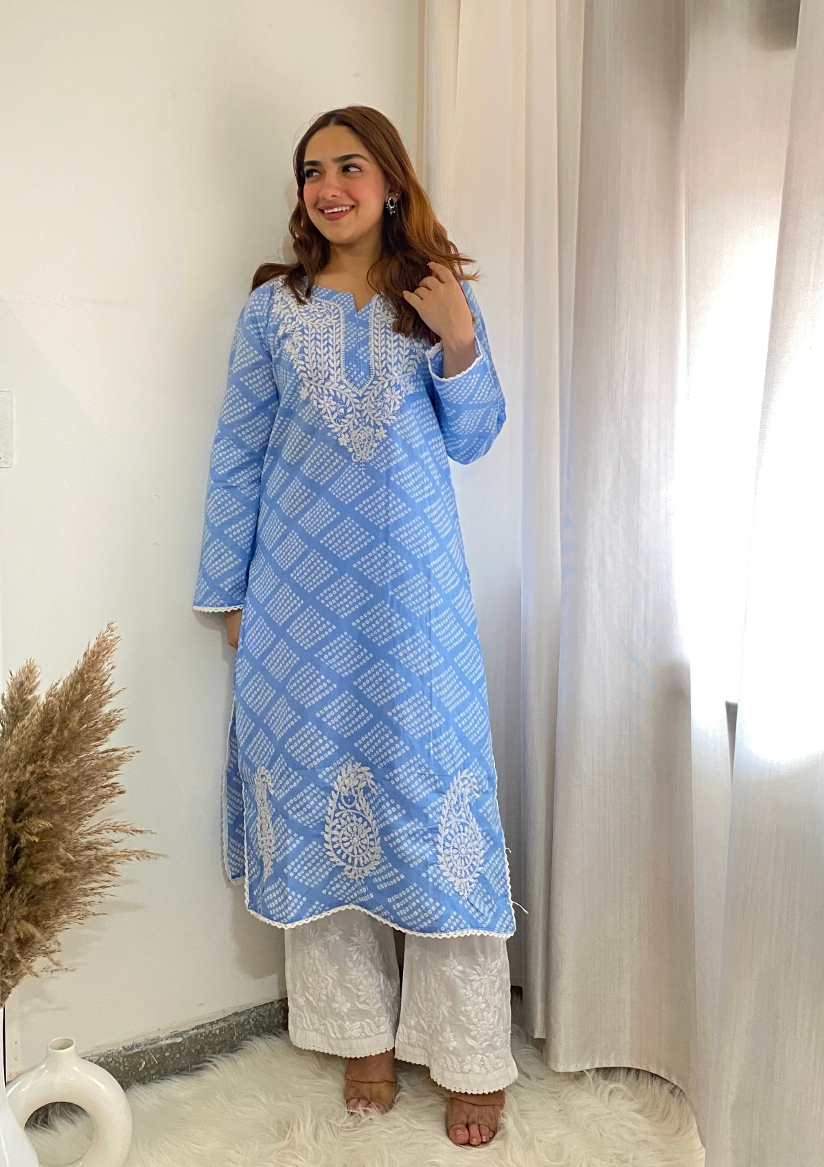 Elham Chikankari Mulmul Straight Kurta