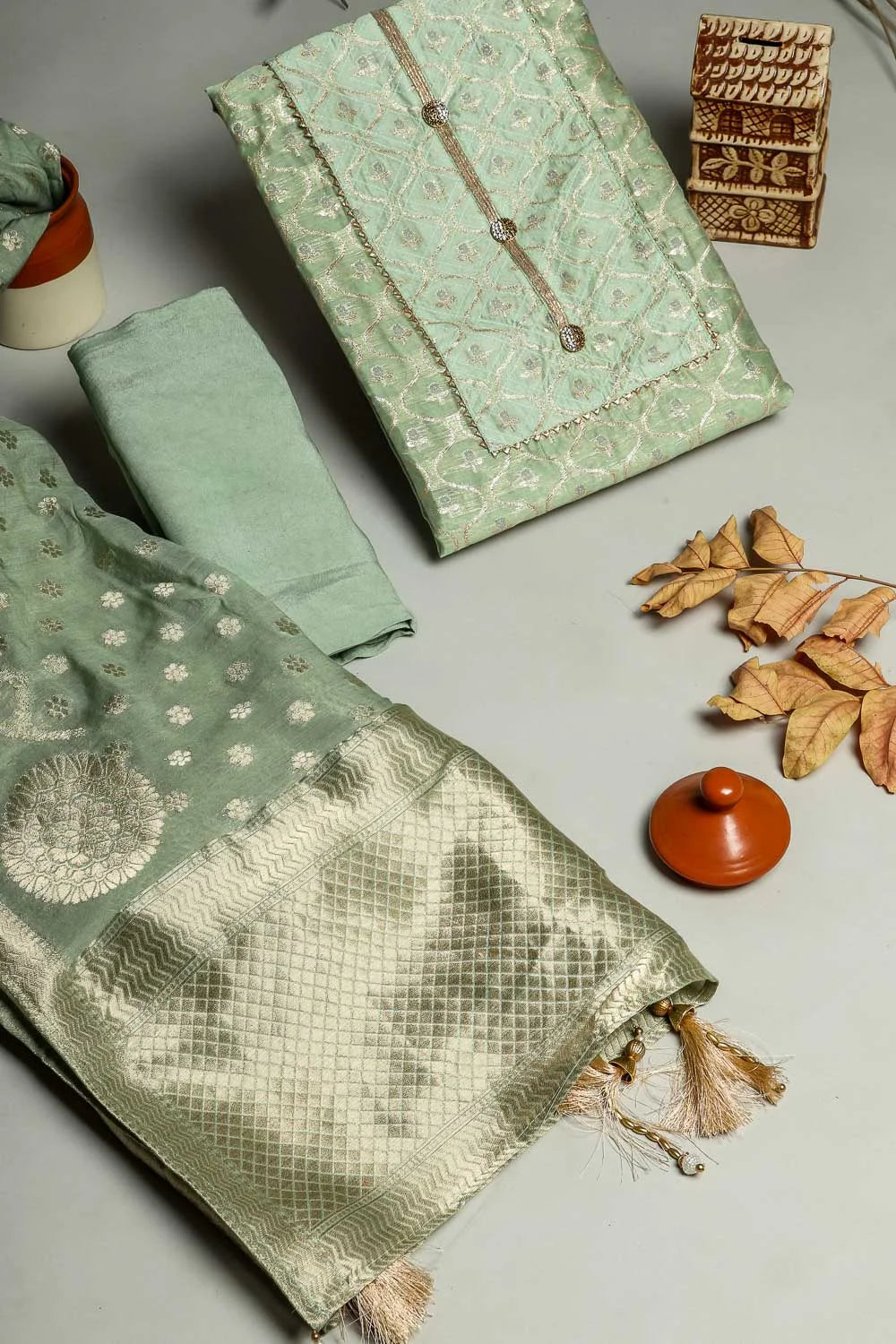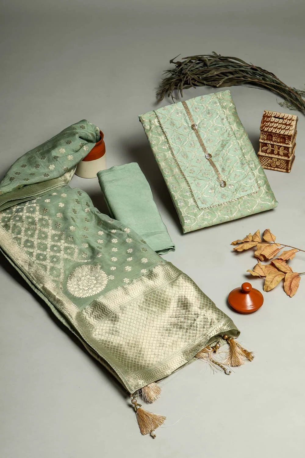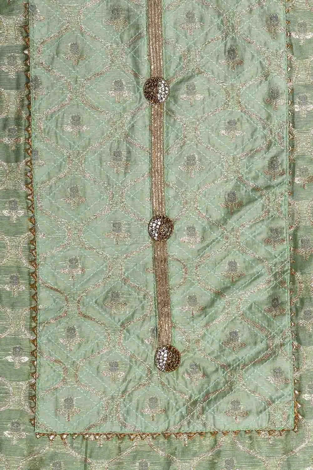 Green Kurta In Chanderi Silk Fabric With Zari Weaving all over & Charkhi Gota On Neck